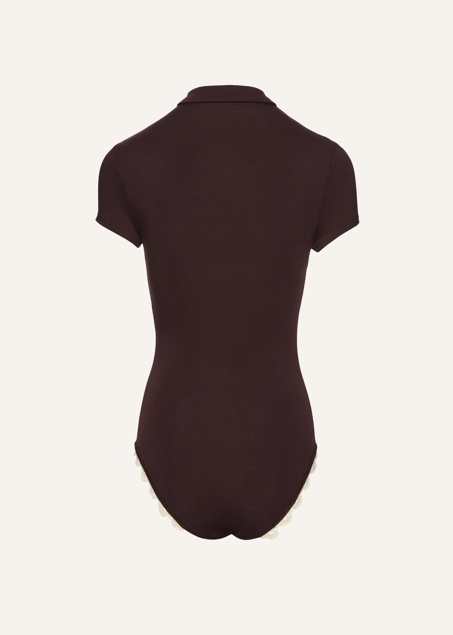 Lace-detail polo bodysuit in brown