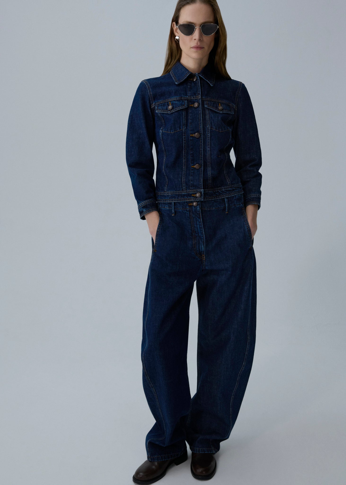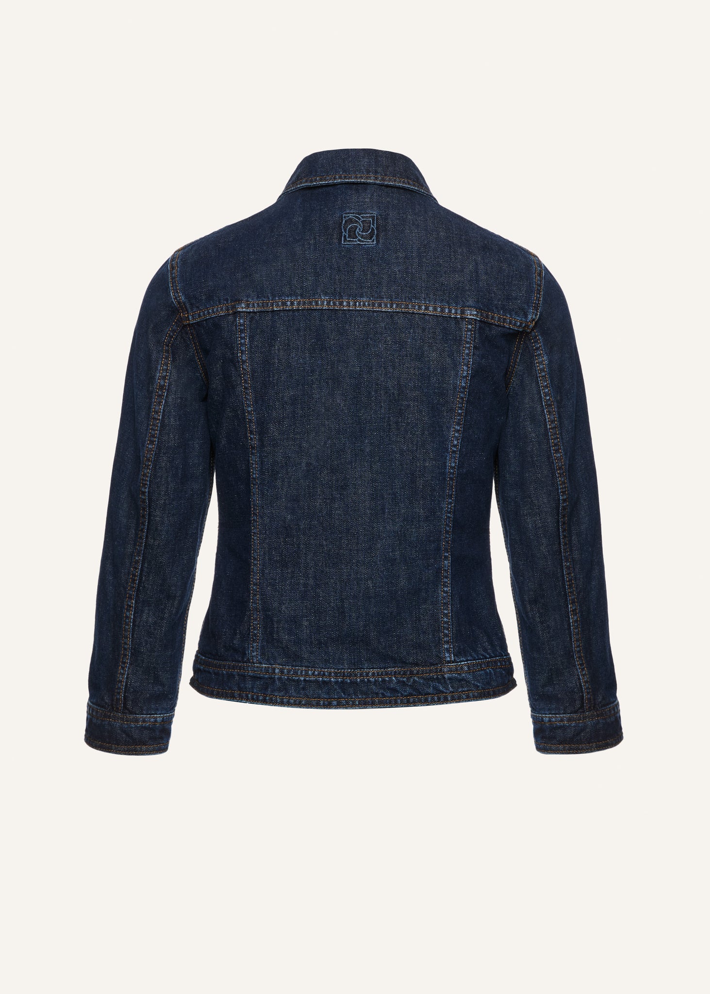 This classic denim jacket is reimagined with a feminine, contoured fit that flatters the silhouette. Chest flap pockets, metal button closures, and structured seams lend an authentic touch, while the branded embroidery at the back adds a signature finish.