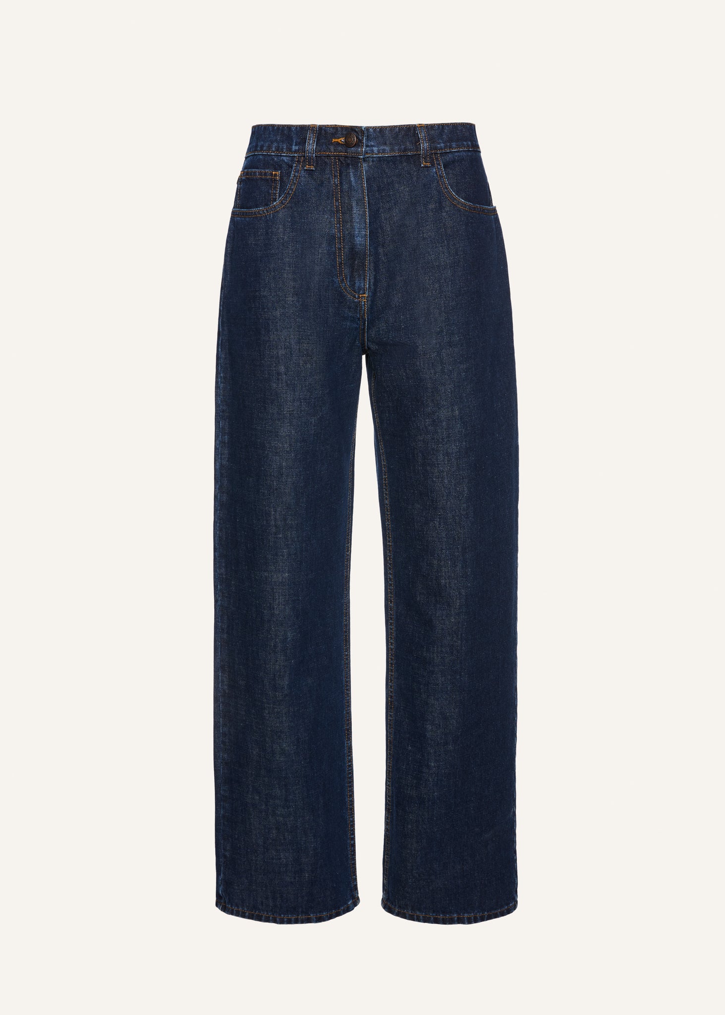 Designed with a mid-rise waist, five-pocket styling, and a traditional button fly, they’re finished with small back hem slits. A leather logo patch at the waistband completes the look with a signature touch.