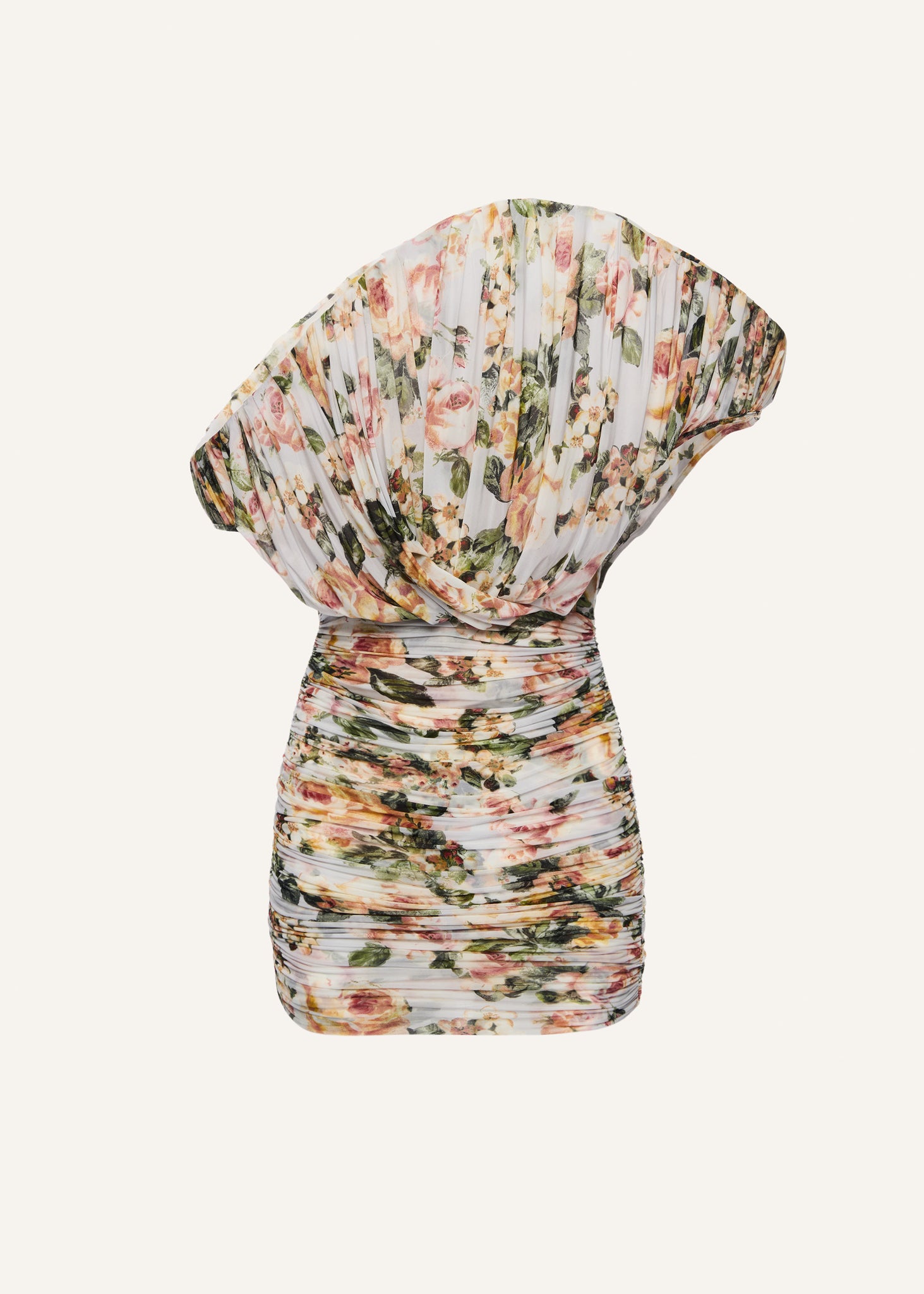 A standout piece of the collection, this sculptural mini dress features a dramatic fan-like draped front that flows into a one-shoulder silhouette. Crafted with Magda Butrym’s signature gathered detailing, the body-hugging fit is created through intricate ruching across the torso and hips. A bold yet elegant evening option that captures the essence of the brand’s modern femininity.