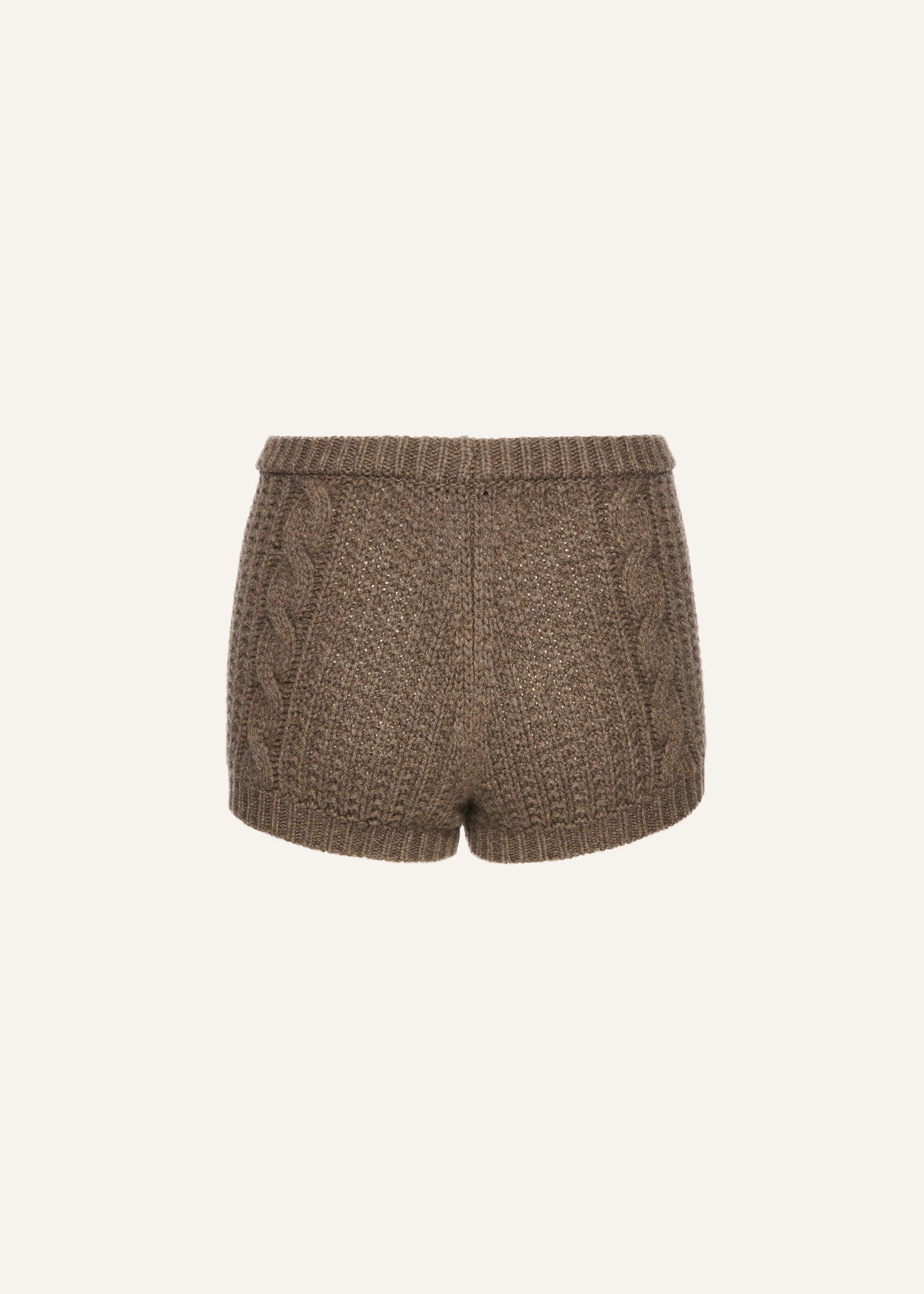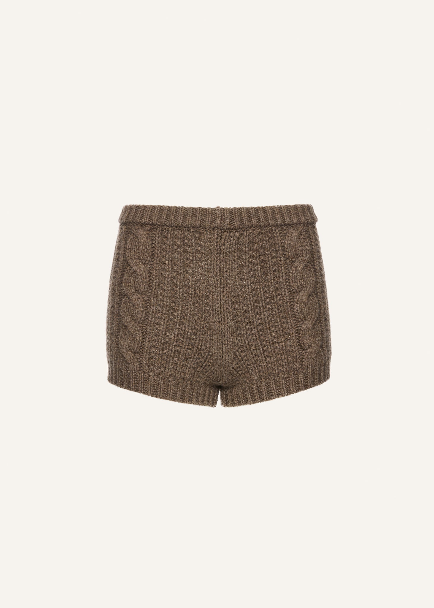 Soft, sculpted, and effortlessly luxe — these high-waisted shorts are spun from pure cashmere in a chunky cable-knit pattern. Featuring ribbed trims and a flattering close fit, they balance comfort with sensuality, making them perfect for layering or lounging. An elevated essential that redefines cozy sophistication.