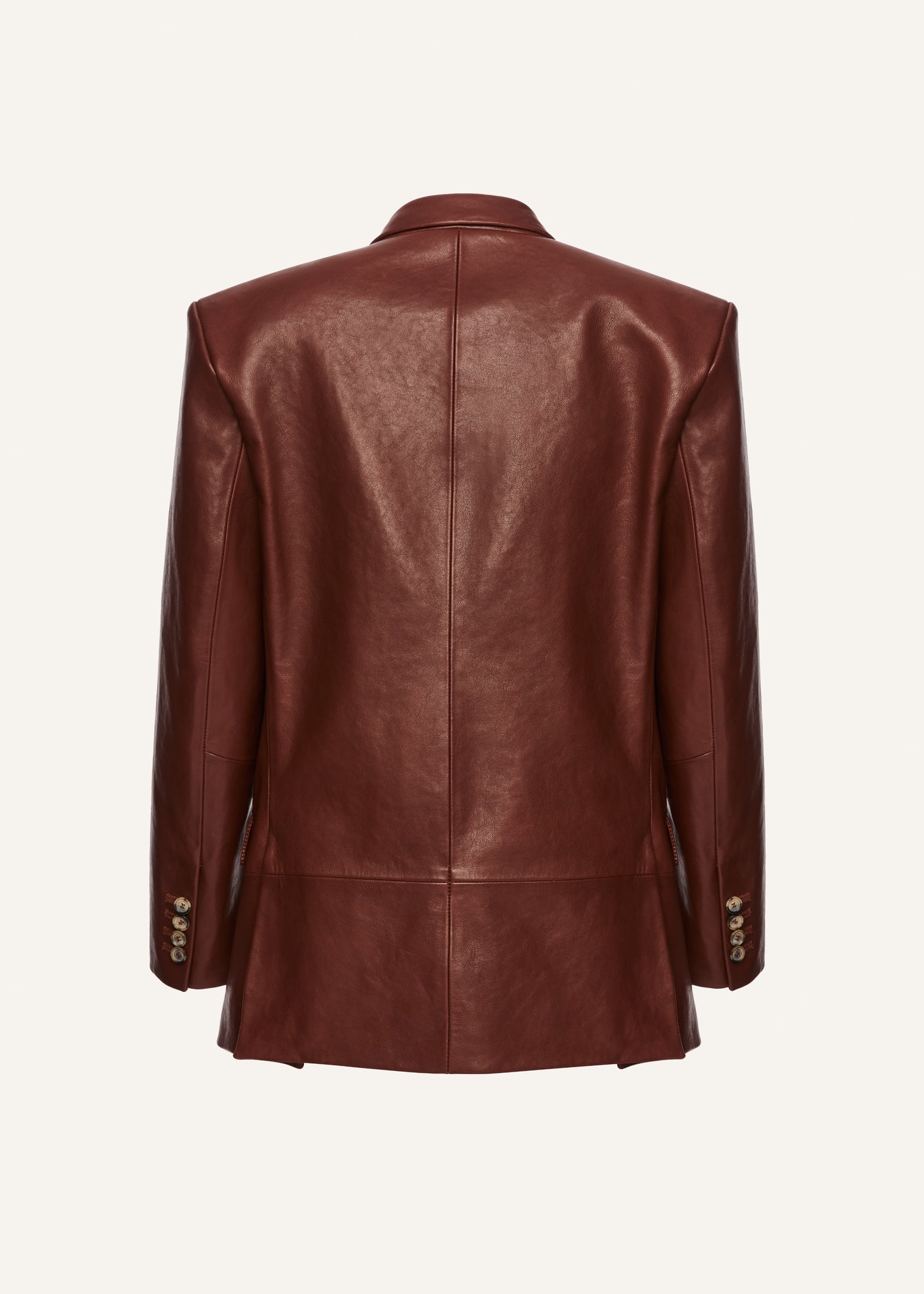 This jacket features sharp lapels, a single-breasted two-button closure, and flap pockets. It has a clean, structured finish that balances softness with edge.