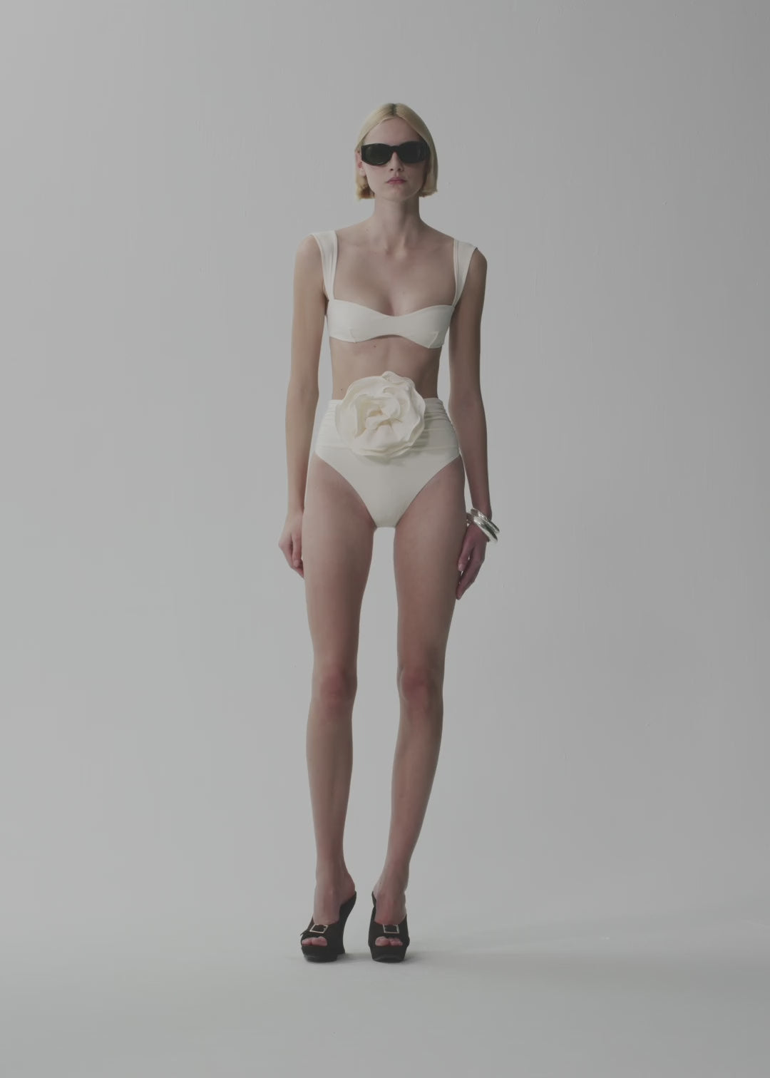 • Load and play video in Gallery viewer, High-waisted flower appliqué swim bottom in cream