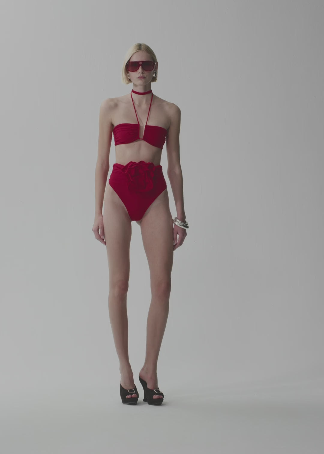 • Load and play video in Gallery viewer, High-waisted flower appliqué swim bottom in red