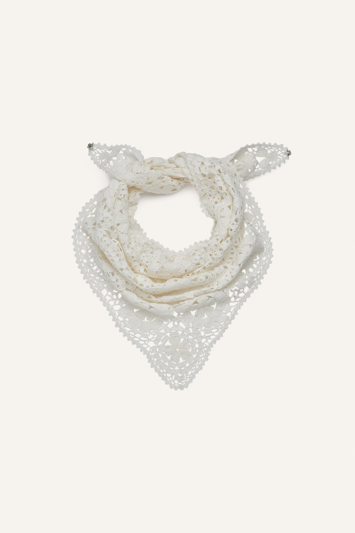 Using special traditional Polish crochet technology from Koniakow, Magda creates a new crochet line incorporating lace floral patterns. This crochet scarf is a chic way to add a very special touch to your look. The ends are embellished with a rose bead in silver.