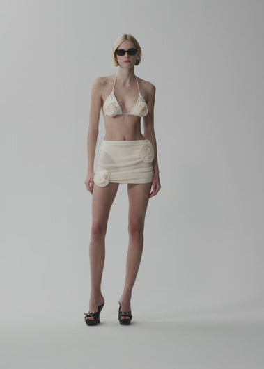 Crepe rose mini skirt in cream