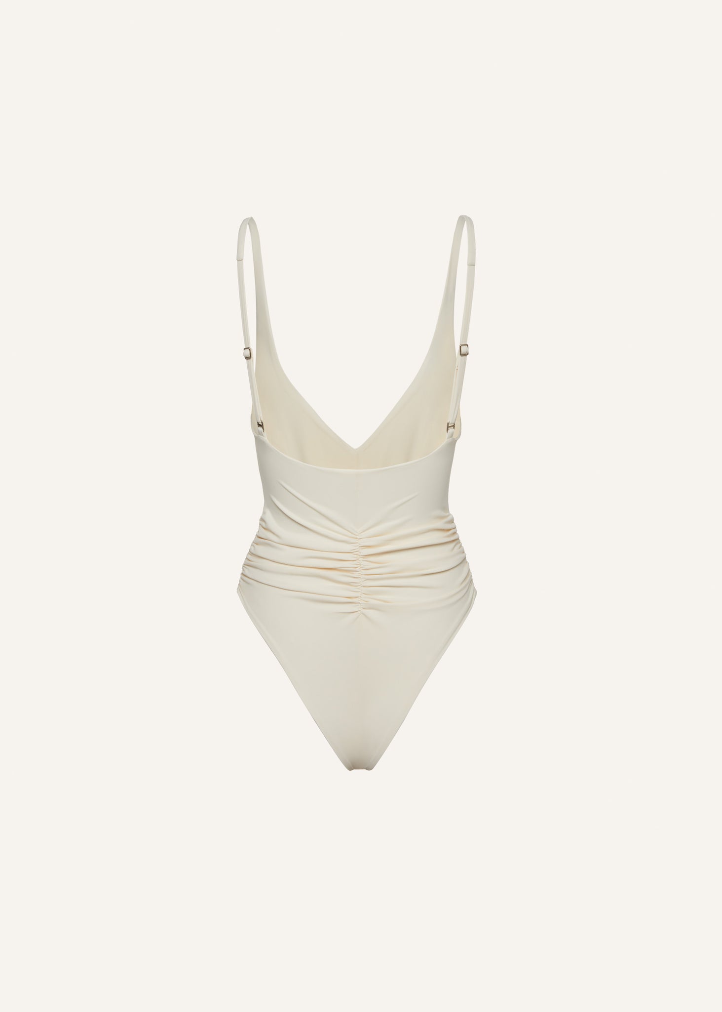 • Load image into Gallery viewer, Ruched flower swimsuit in cream