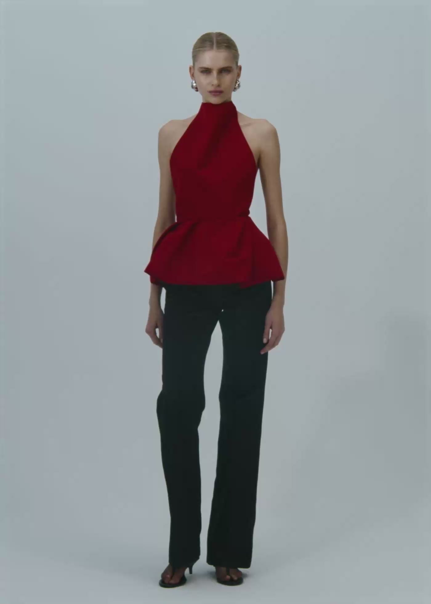 Halter peplum top in red