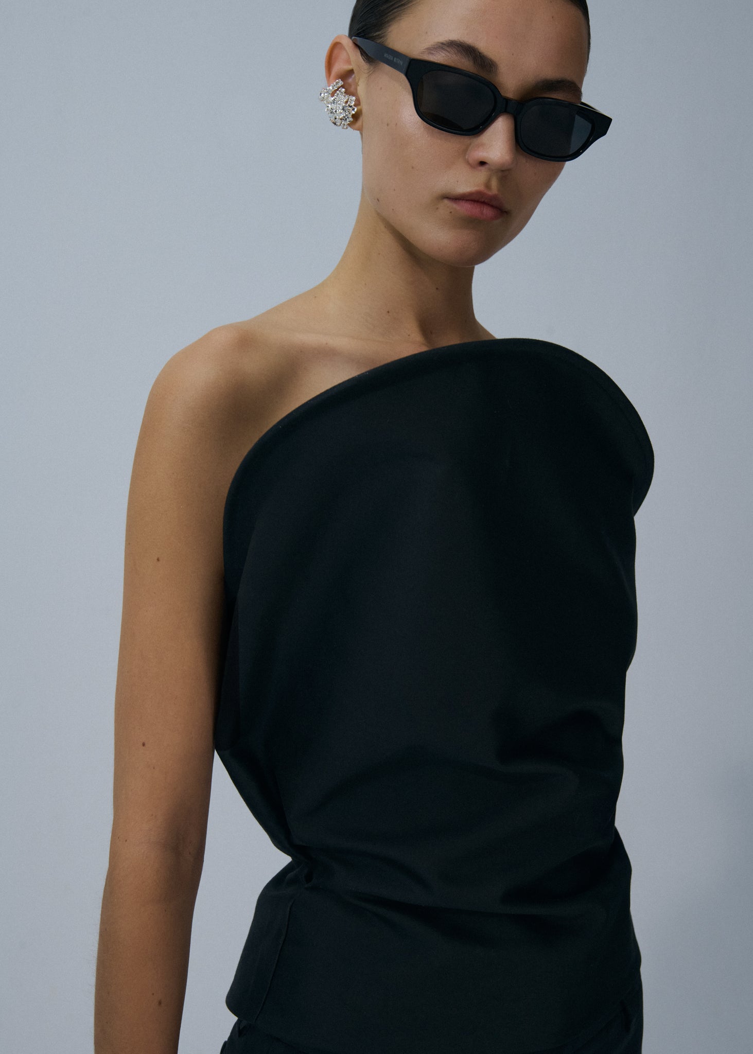 Sculptural strapless bustier top in black