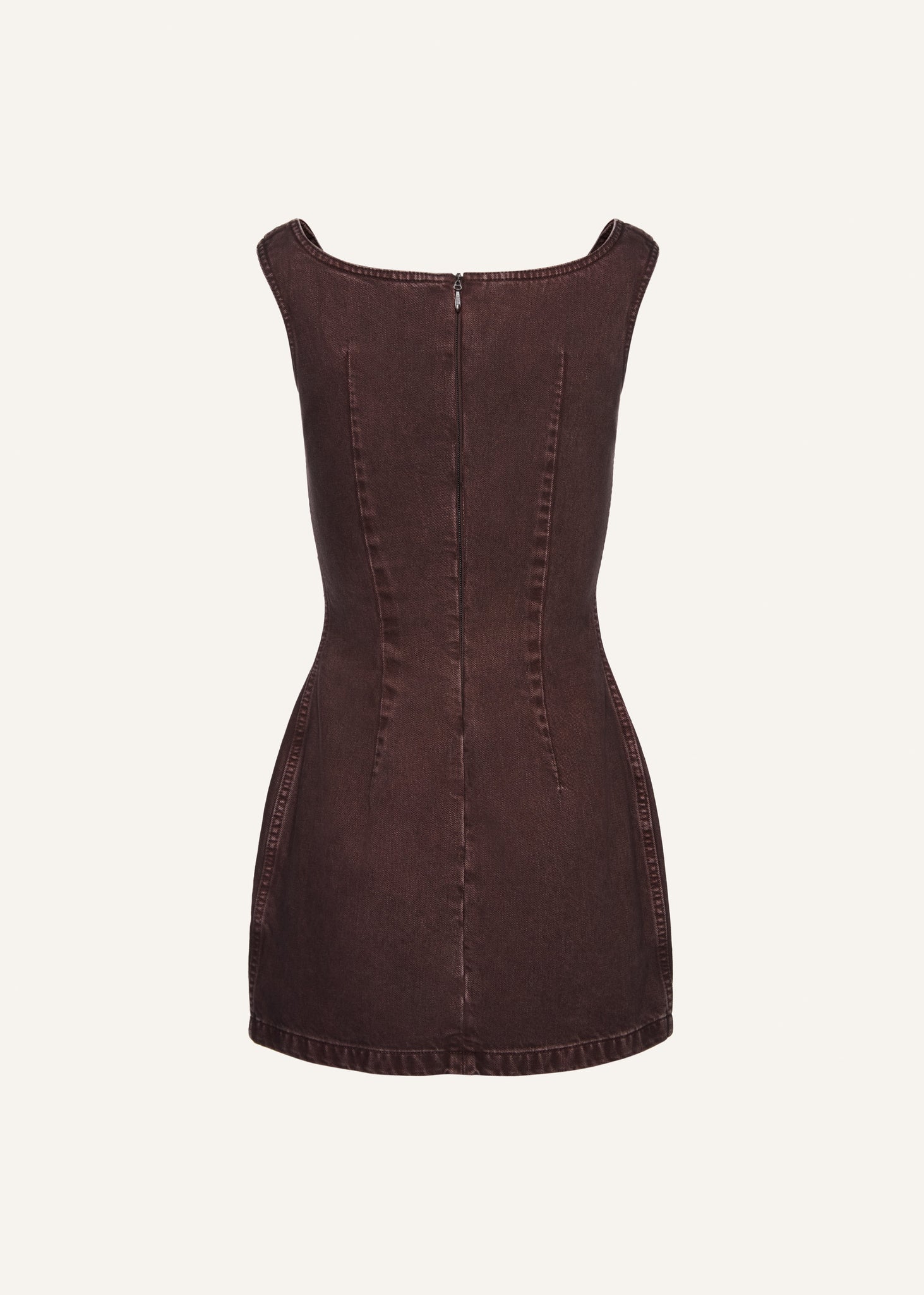 Round-neck mini denim dress in brown