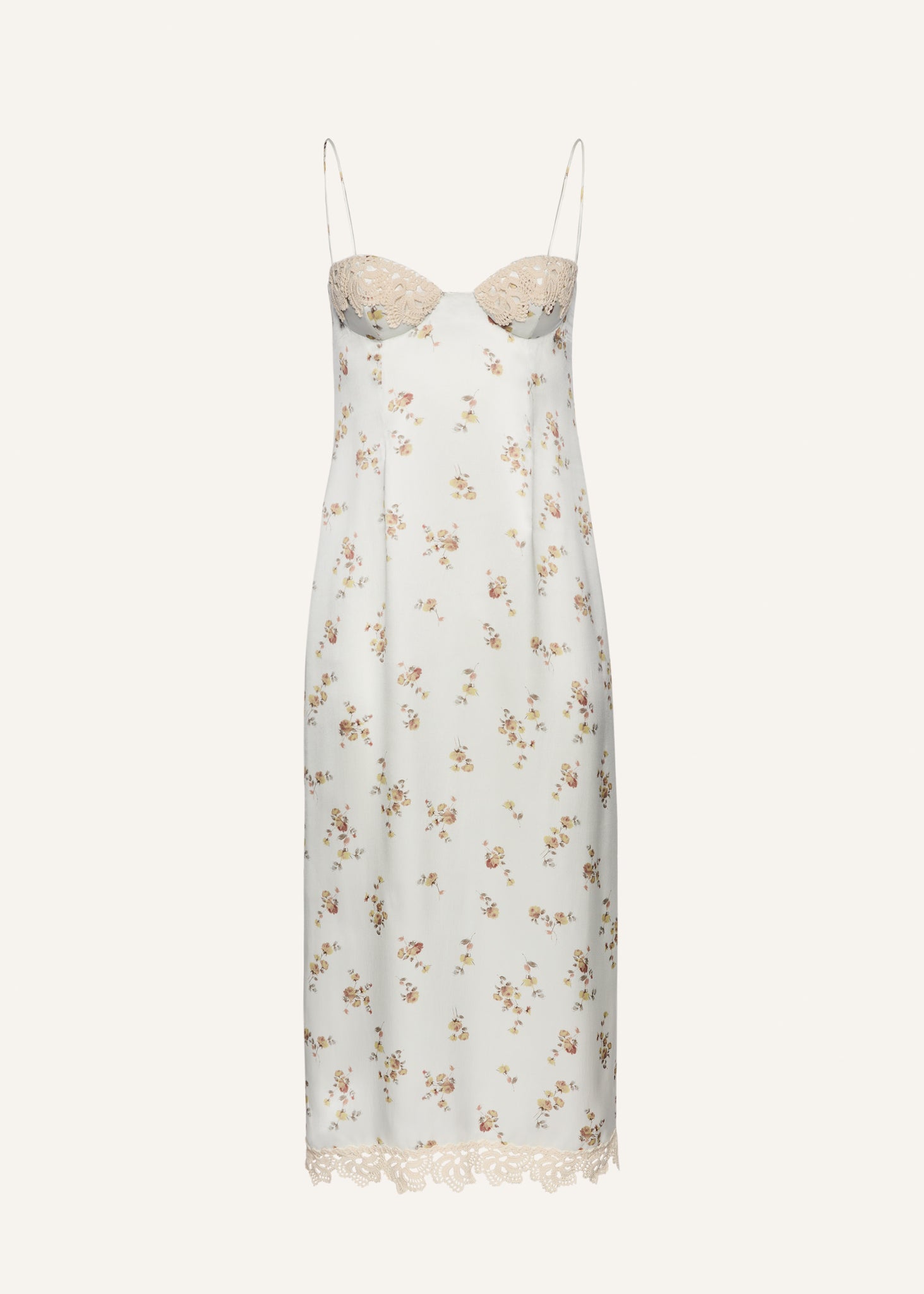 • Load image into Gallery viewer, Lace bustier slip dress in cream print