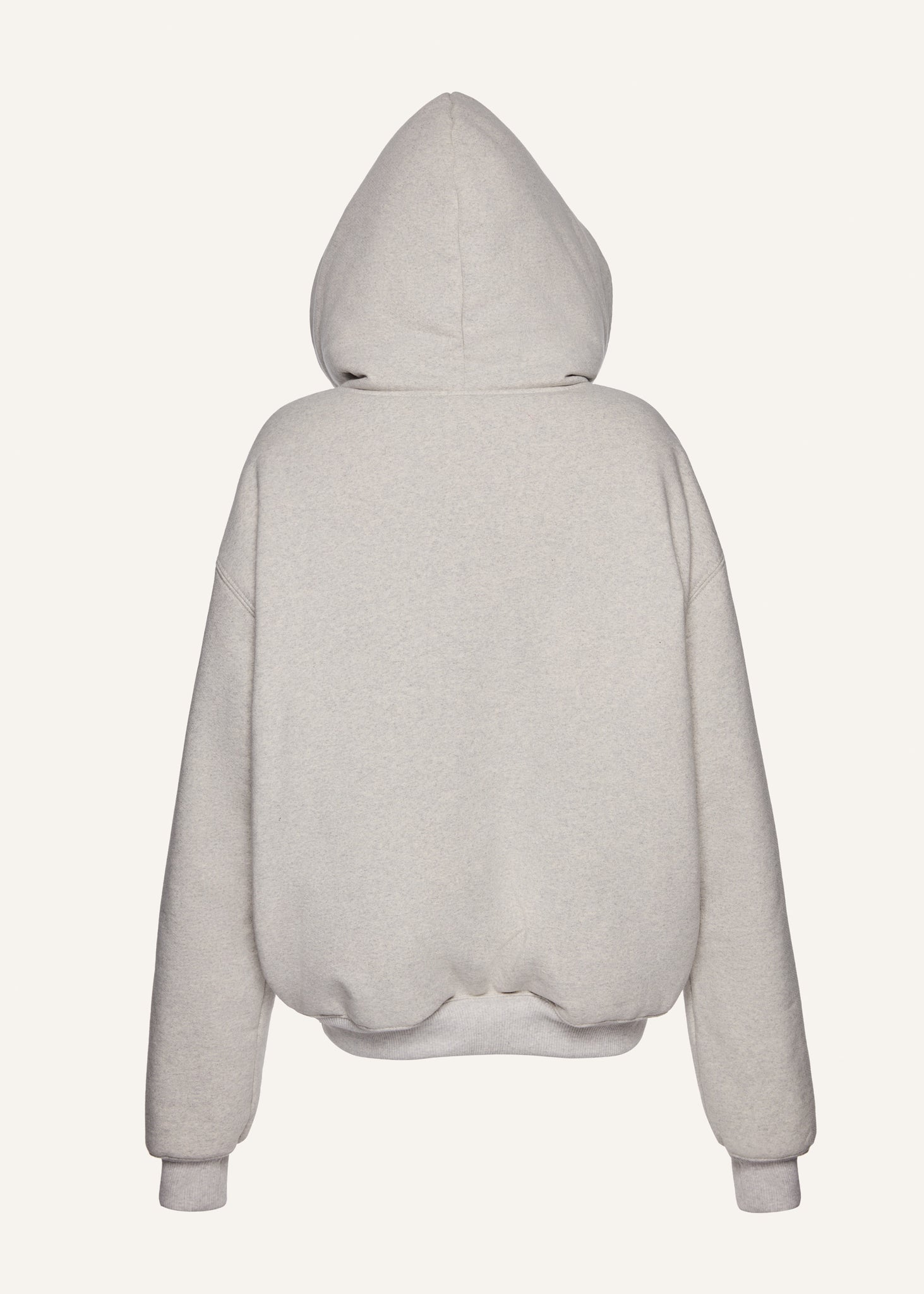 a thick padded hoodie that can be worn as loungewear or as a jacket, this zip up is trimmed with Magda Butrym's signature handmade lace crochet trim.