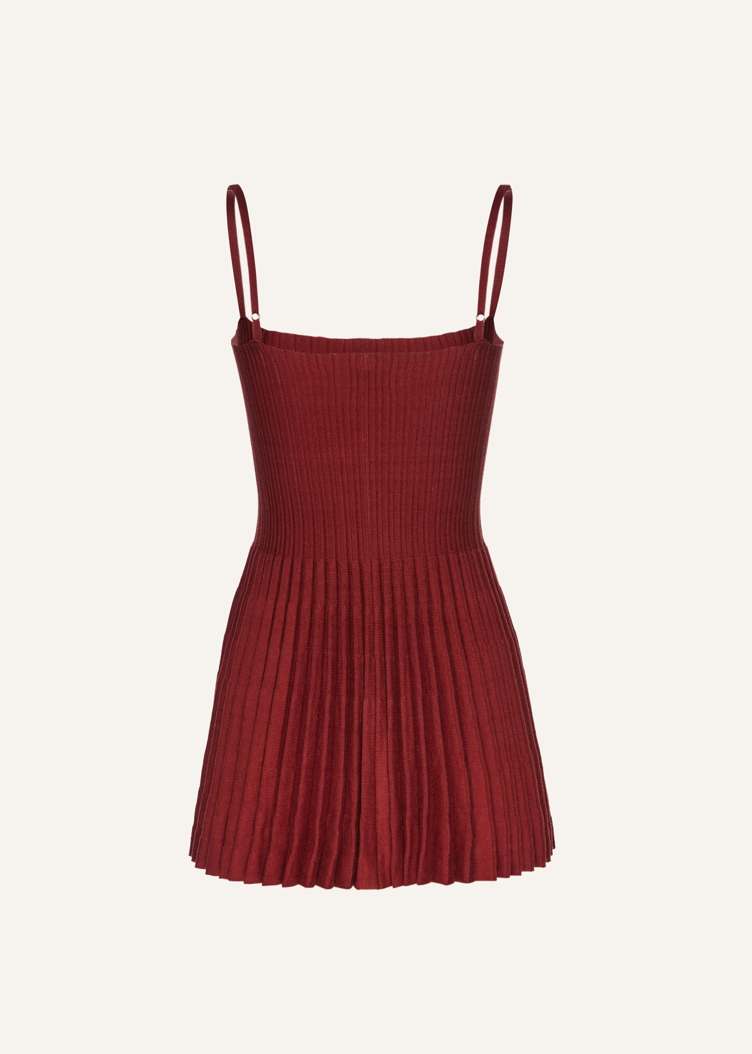 A cotton knitwear skater dress with an accordion skirt and a square neckline.