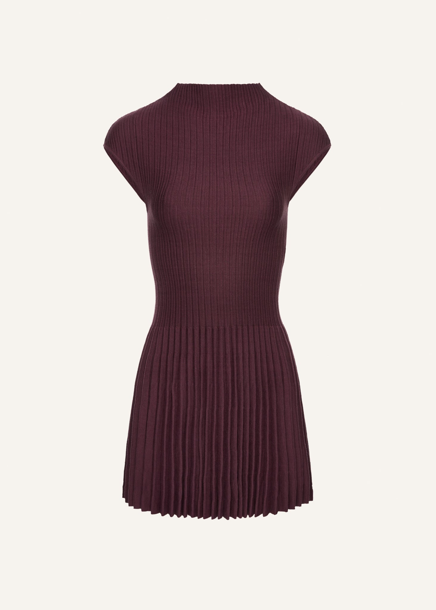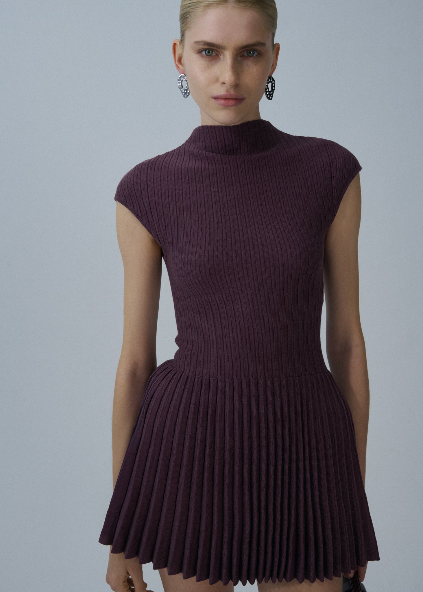 A cotton knitwear skater dress with an accordion skirt and a sleeveless high-neck.