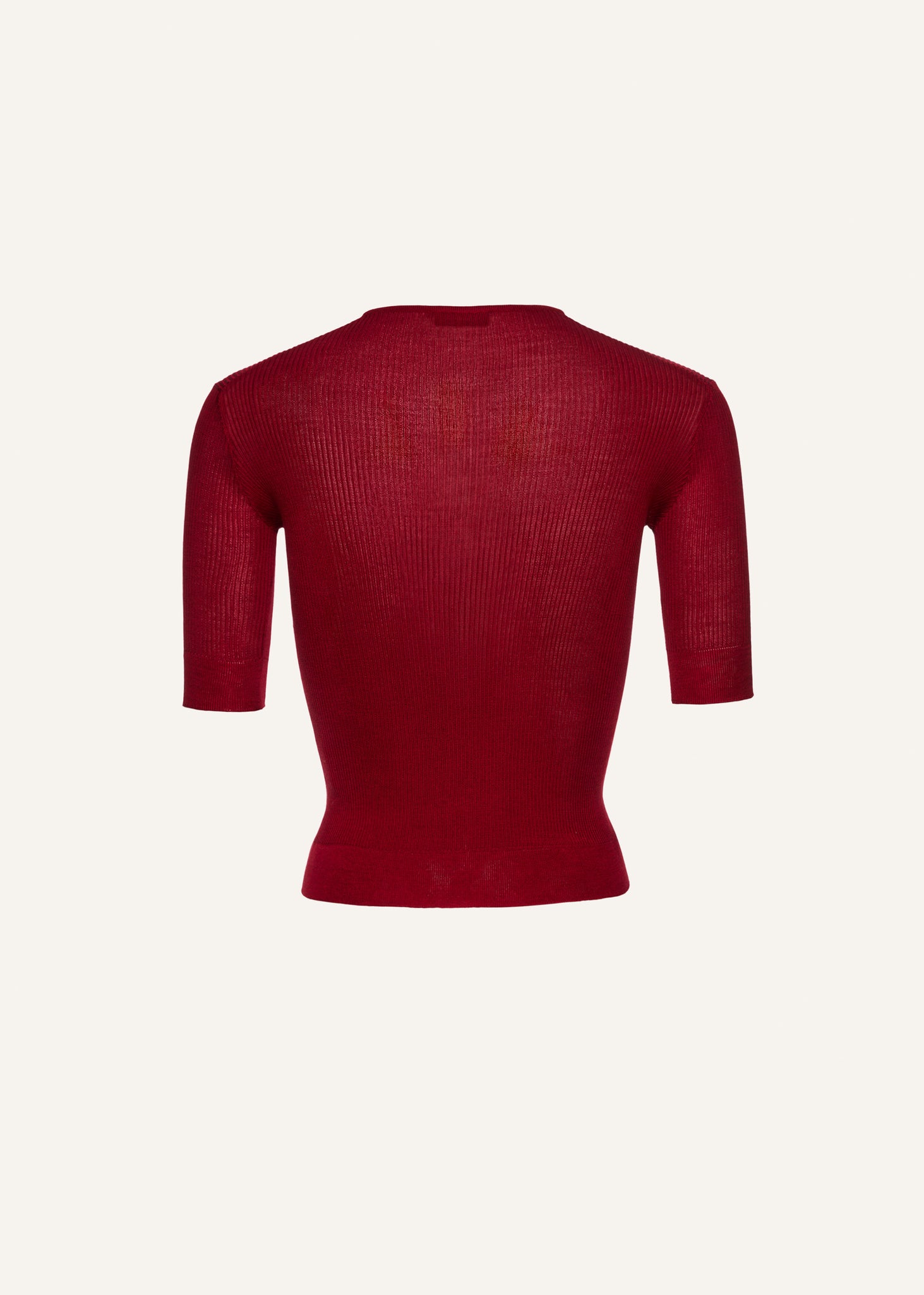 Short sleeve silk knit top in bordeaux