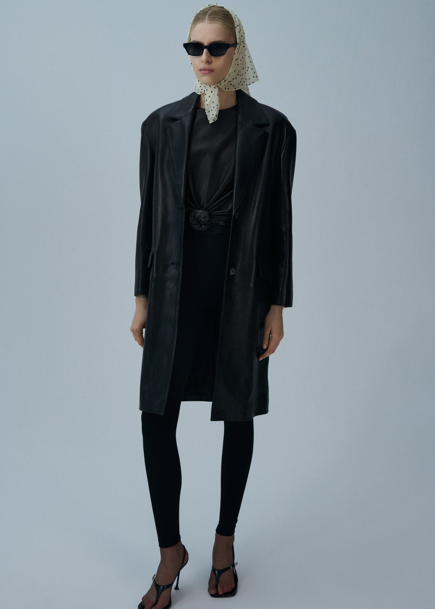 Magda's classic t-shirt is remade in leather and features a knotted detail at the front and detachable shoulder pads.