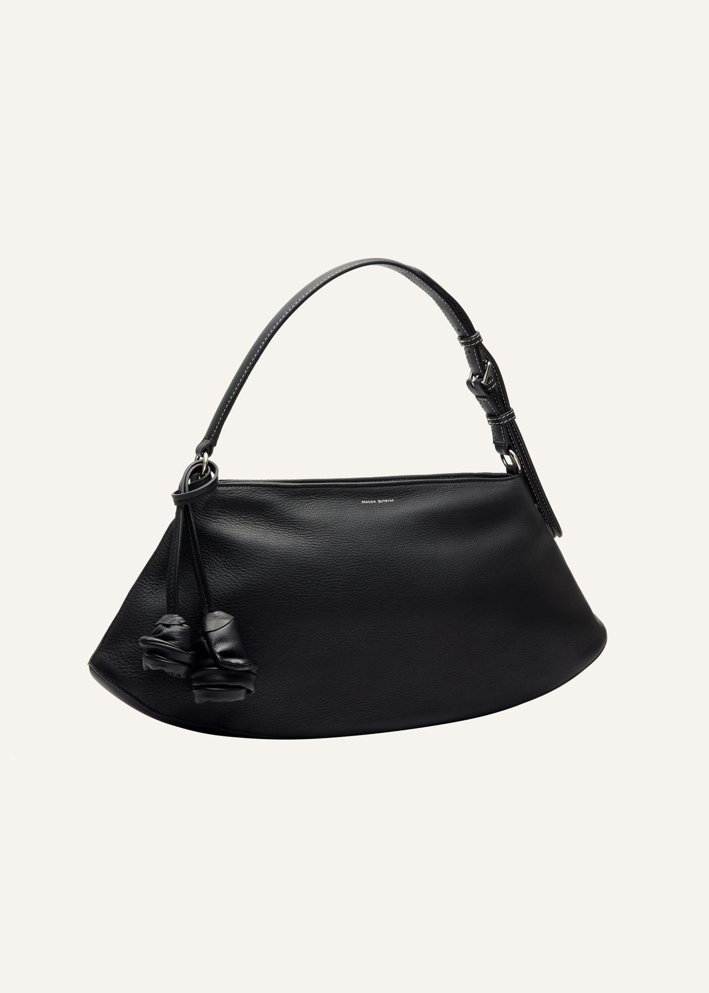 An elevated everyday essential, the Maya bag is crafted from supple leather with a softly structured silhouette. Designed for both elegance and function, it features a minimalist top handle and discreet metallic logo detail. The standout element is its signature detachable leather flower charm, adding a feminine and artisanal touch. The roomy interior and timeless design make this bag a versatile accessory for both day and evening looks.