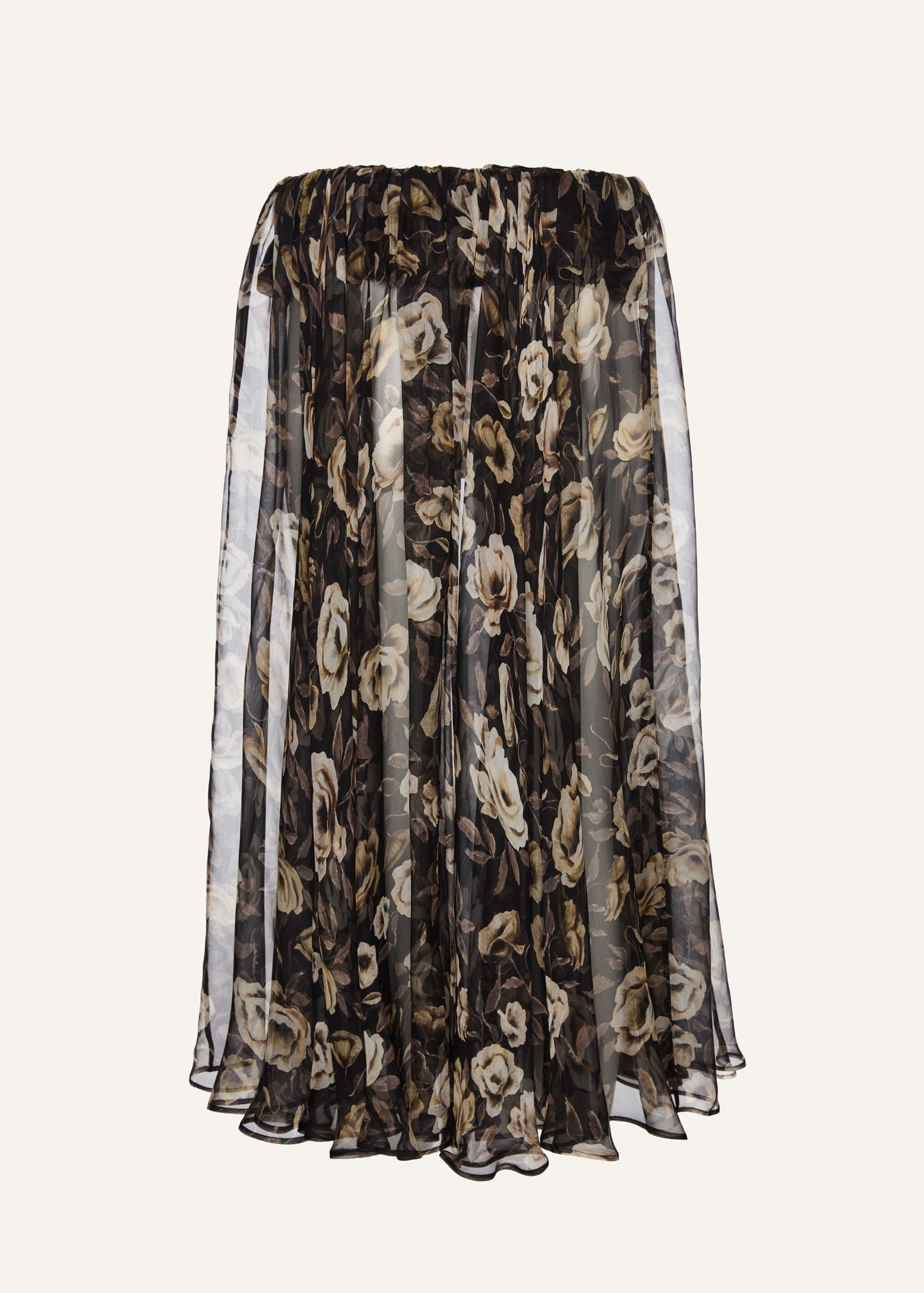 A low waist midi skirt made from sheer flowing silk, with an elastic waistband.