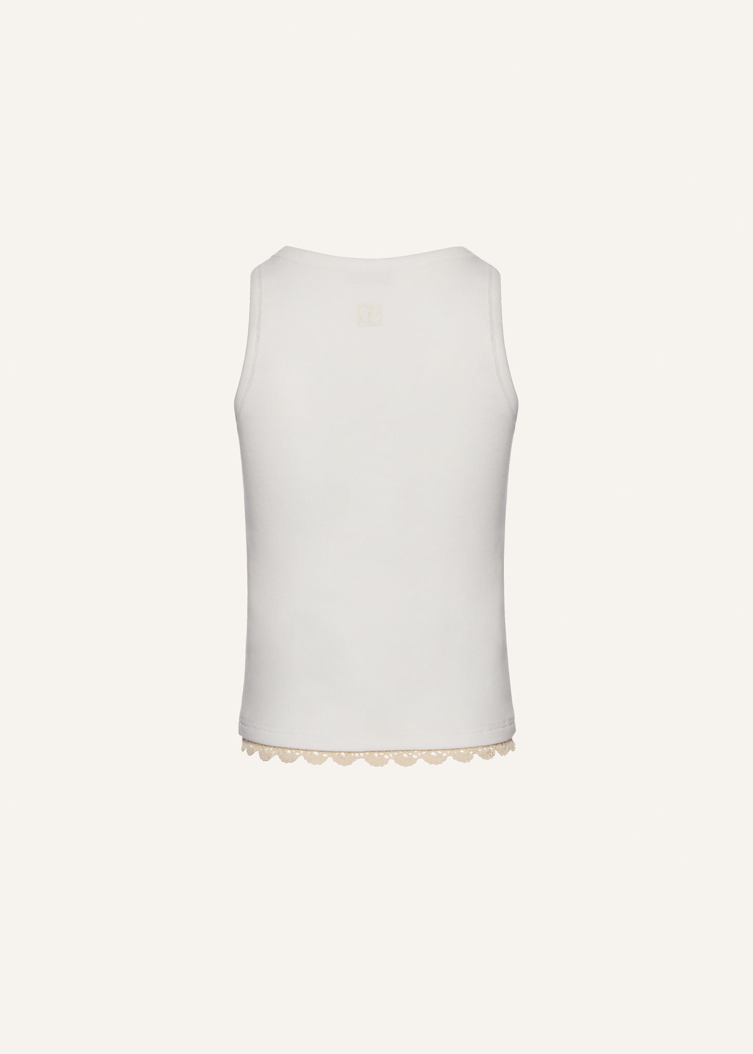 A simple cotton tank top featuring Magda Butrym's signature handmade lace crochet detailing at the hem.