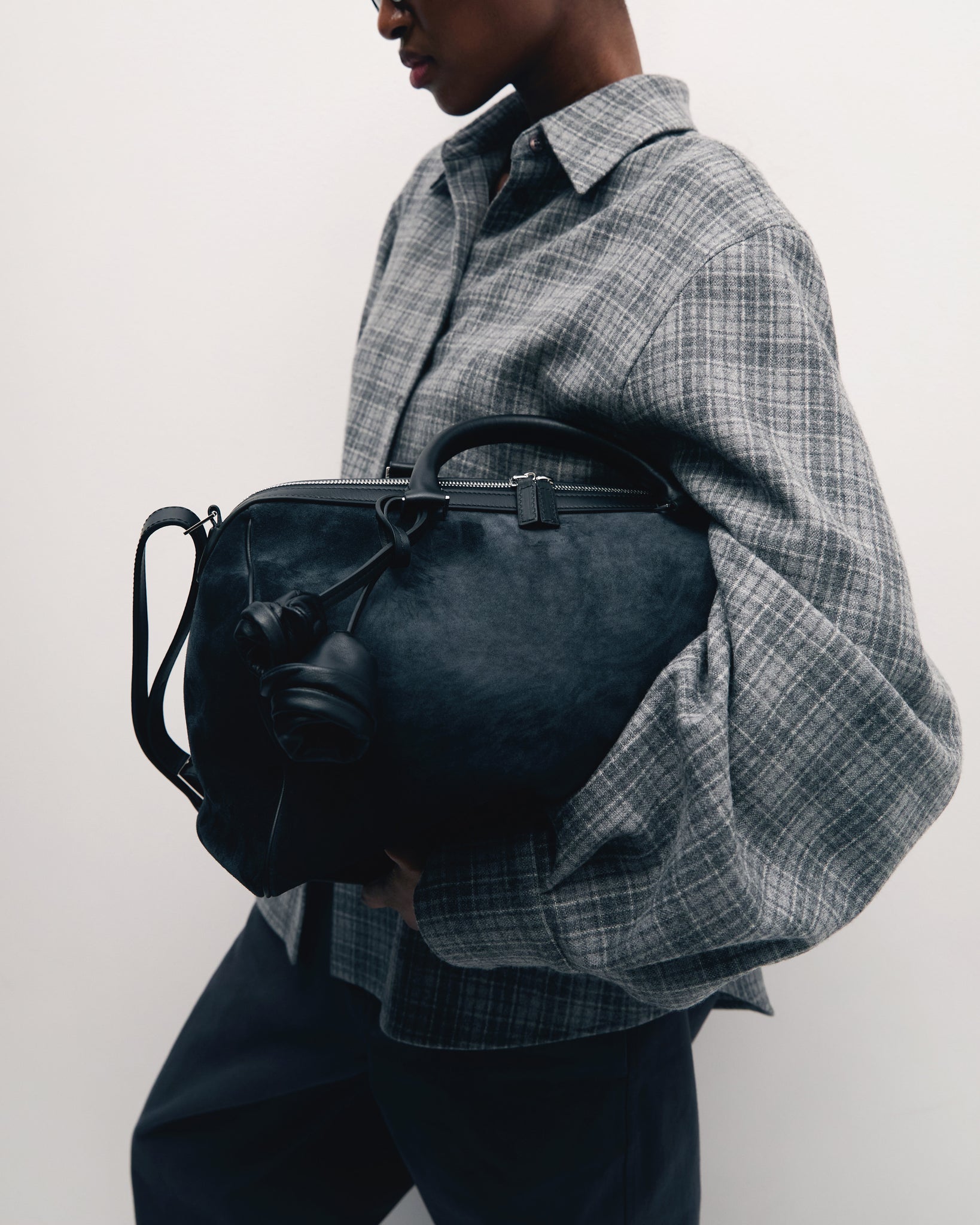 A tribute to Magda Butrym’s roots in Warsaw, the Varsovia bag is a timeless blend of elegance and versatility. This design features a structured silhouette with both top handles and a detachable crossbody strap. Crafted with meticulous attention to detail, its leather exterior is complemented by a detachable flower charm, adding a signature touch of femininity. Perfect for carrying essentials, the Varsovia bag is a statement of timeless elegance, accompanying you effortlessly as you stride through the city. Available in various leather finishes and colors.