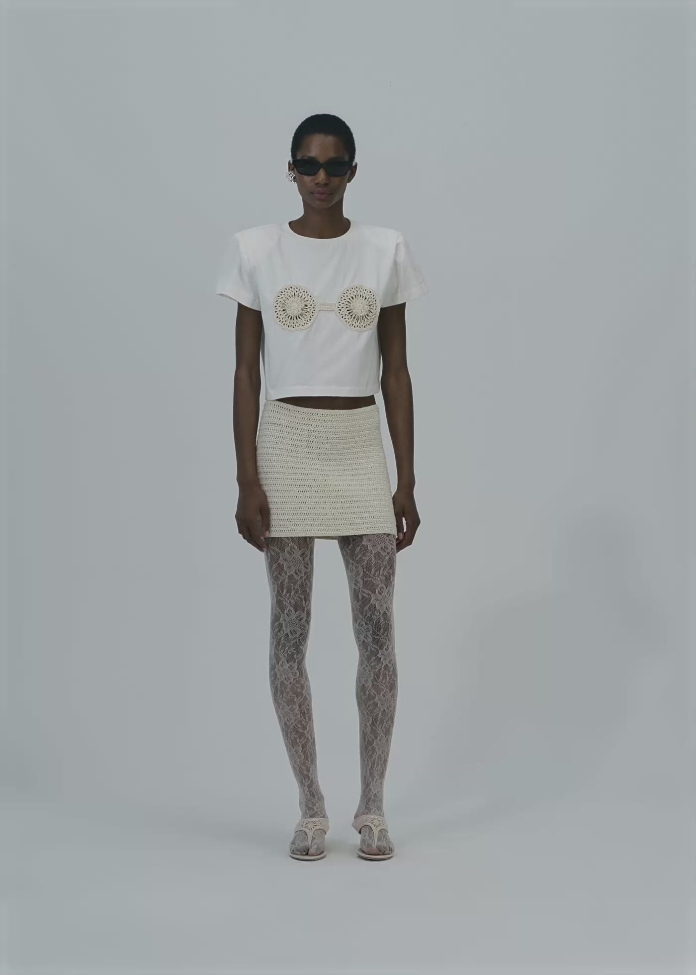 • Load and play video in Gallery viewer, Crochet bra t-shirt in white