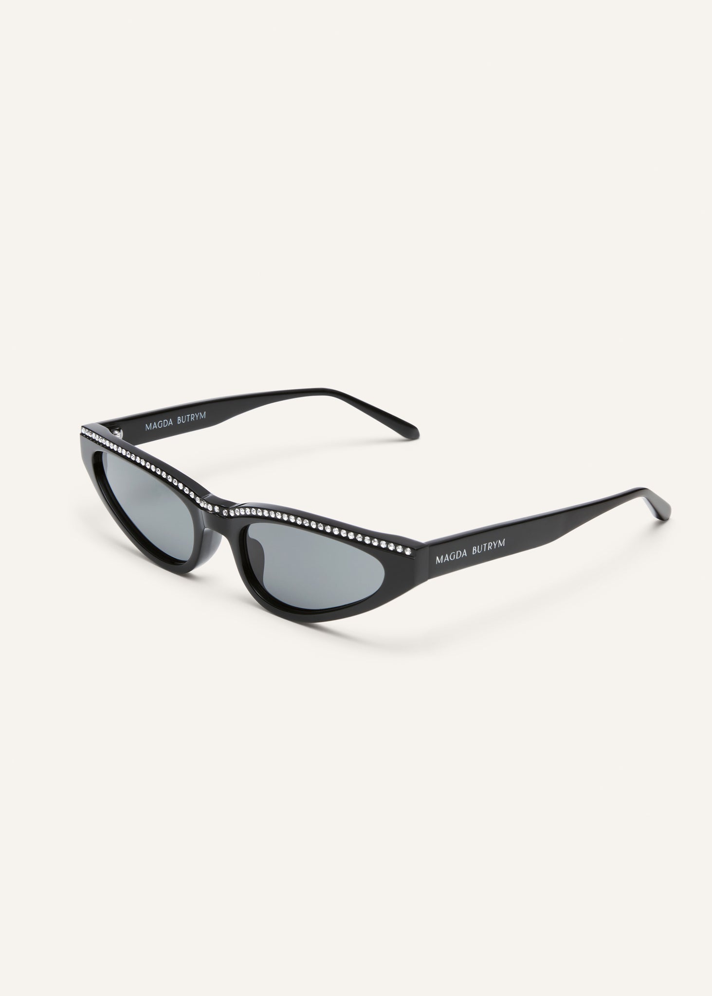 These sunglasses are formed with spectacular sharp cat-eye. This style comes with crystal embellishment on top.