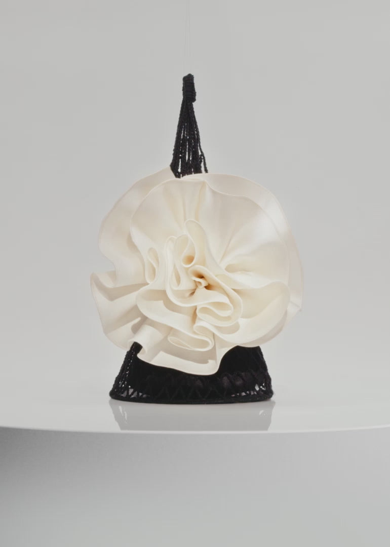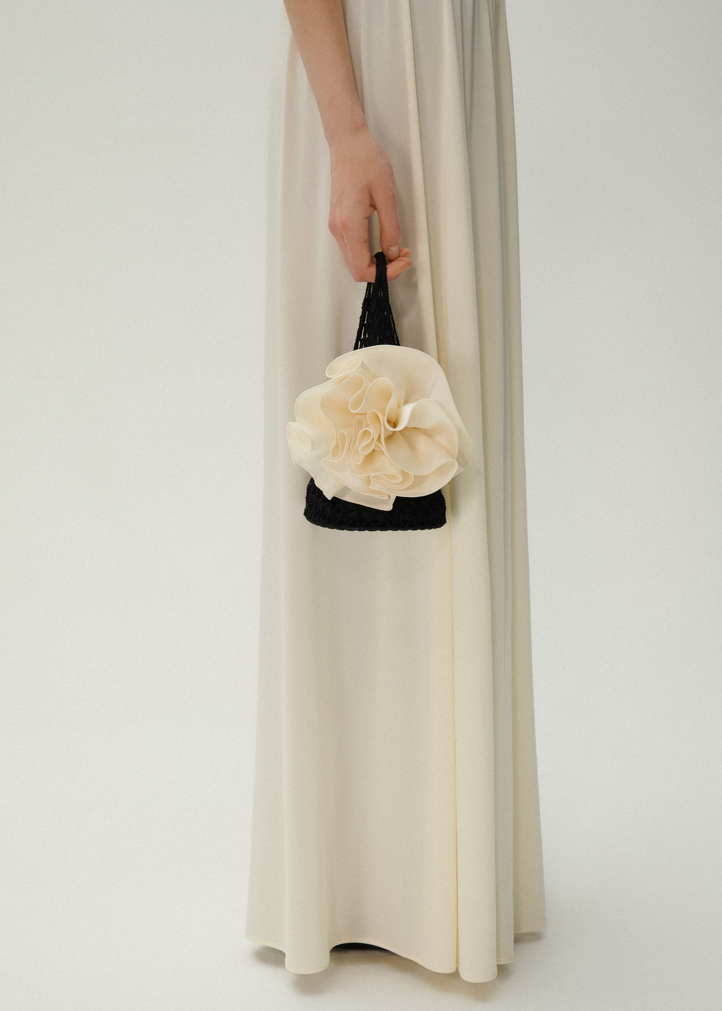 • Load image into Gallery viewer, Small Devana bag cream flower in black