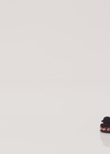 The signature Magda Butrym flower shoe is reimagined as a simple flat sandal, with strappy detailing and long wrap tie ankle straps. The crochet flower brooch is handmade by Magda's team of handweaving artisans, reflecting an important element of the brand's DNA. Nappa leather upper and sole.