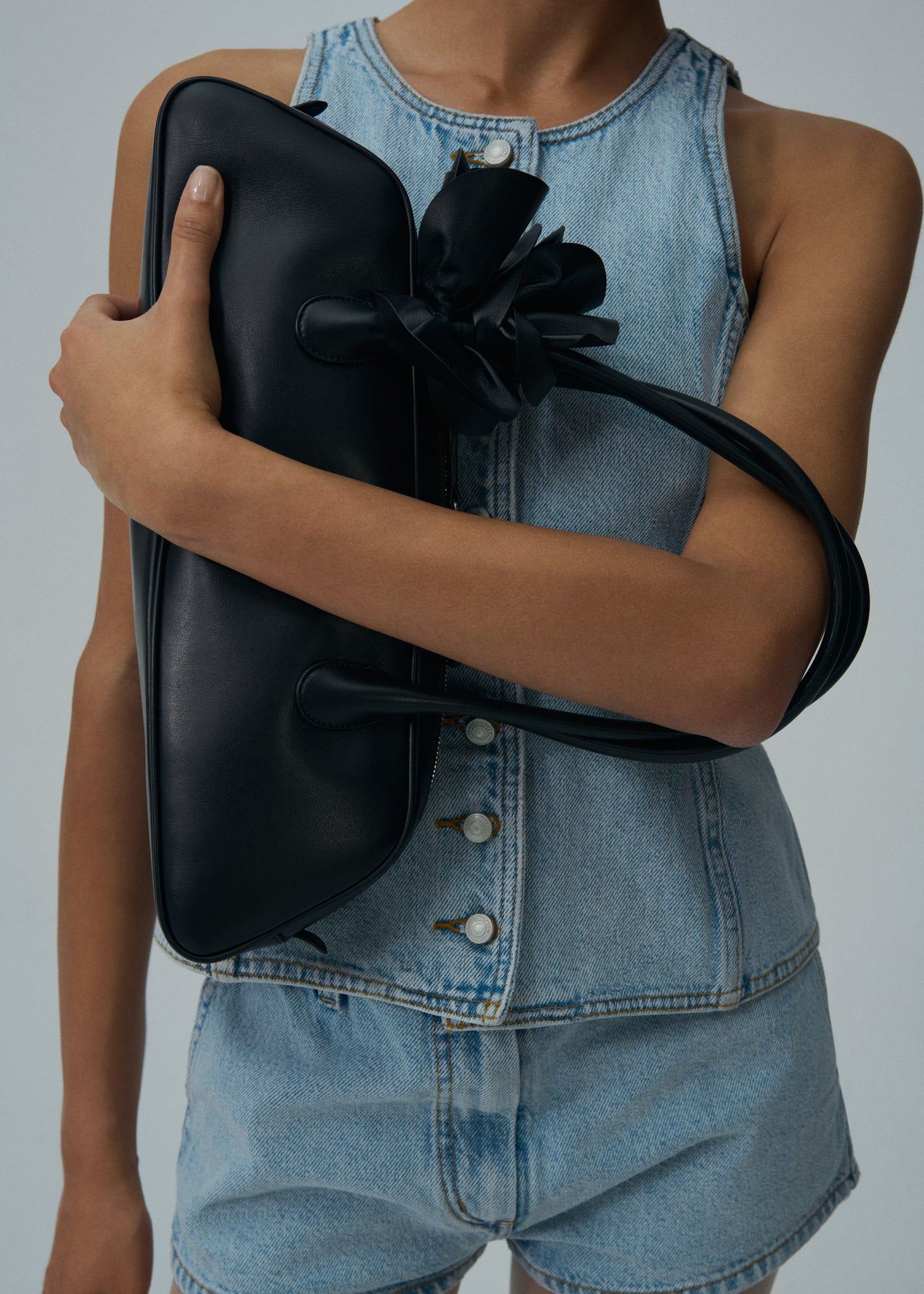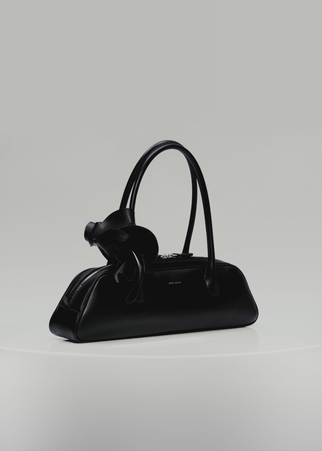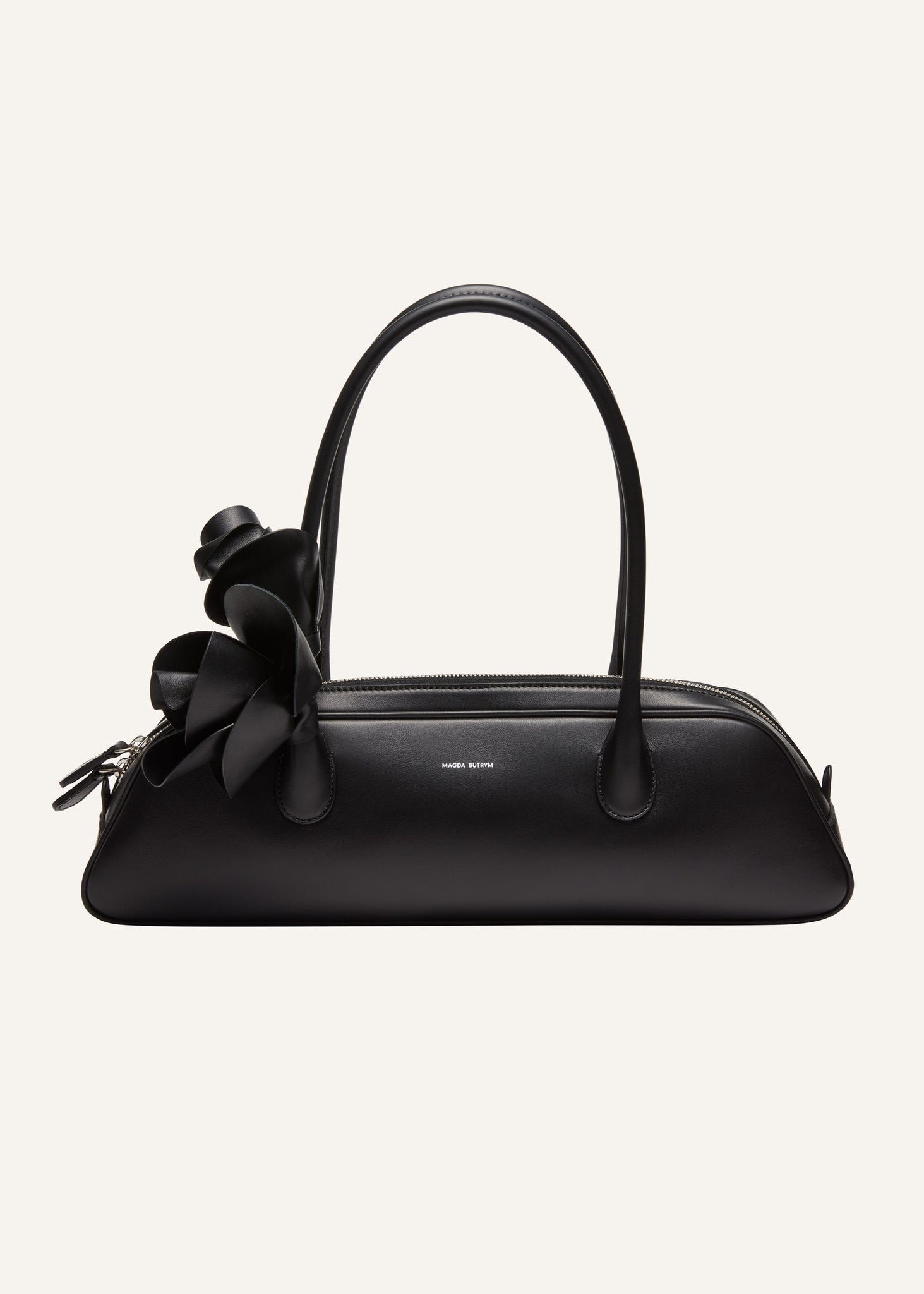 The Brigitte bag gets a new trapeze shape. Inspired by the nostalgia of 90's while deeply rooted in Magda's family heritage. Its elegant silhouette, the roomy interior, two top handles and top zipper have been thoughtfully crafted in Italy. Adding a touch of on-brand dreaminess is the leather flower embellishment. Meticulously arranged and fixed onto the bag's handle. For an ideal finish curl the flower petals outward for a blooming rose effect on your bag.