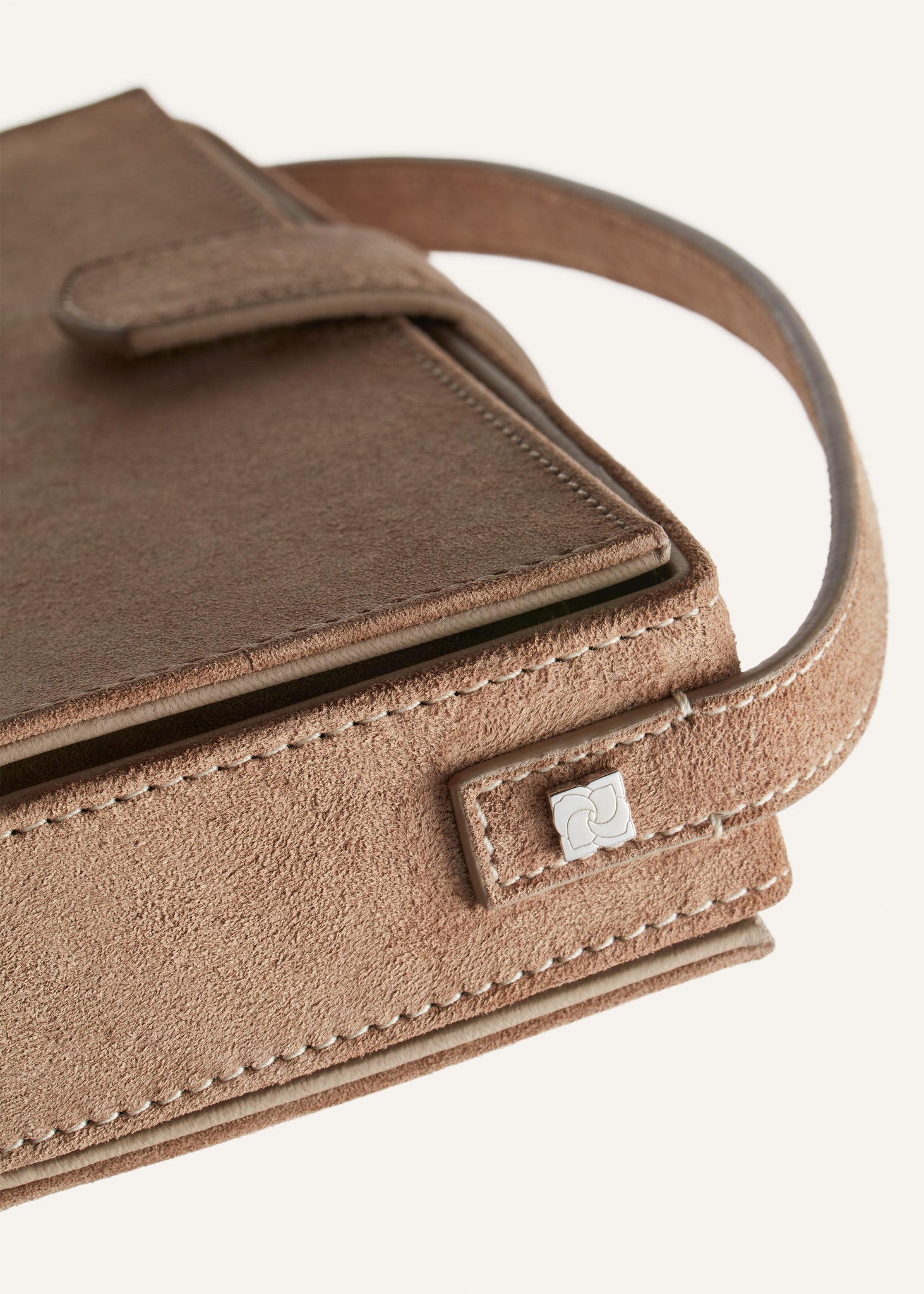 Apolonia bag in beige suede with flower charm