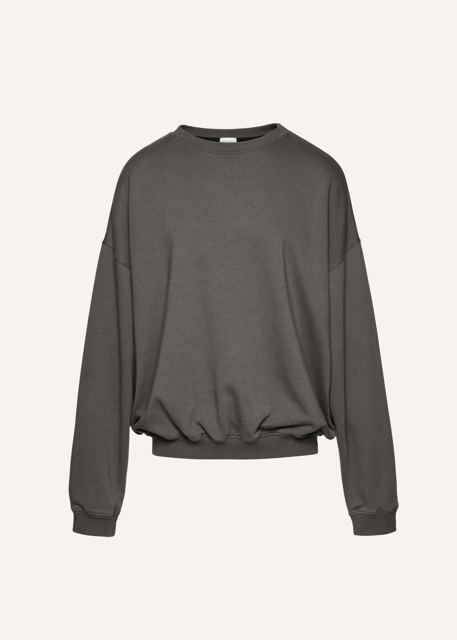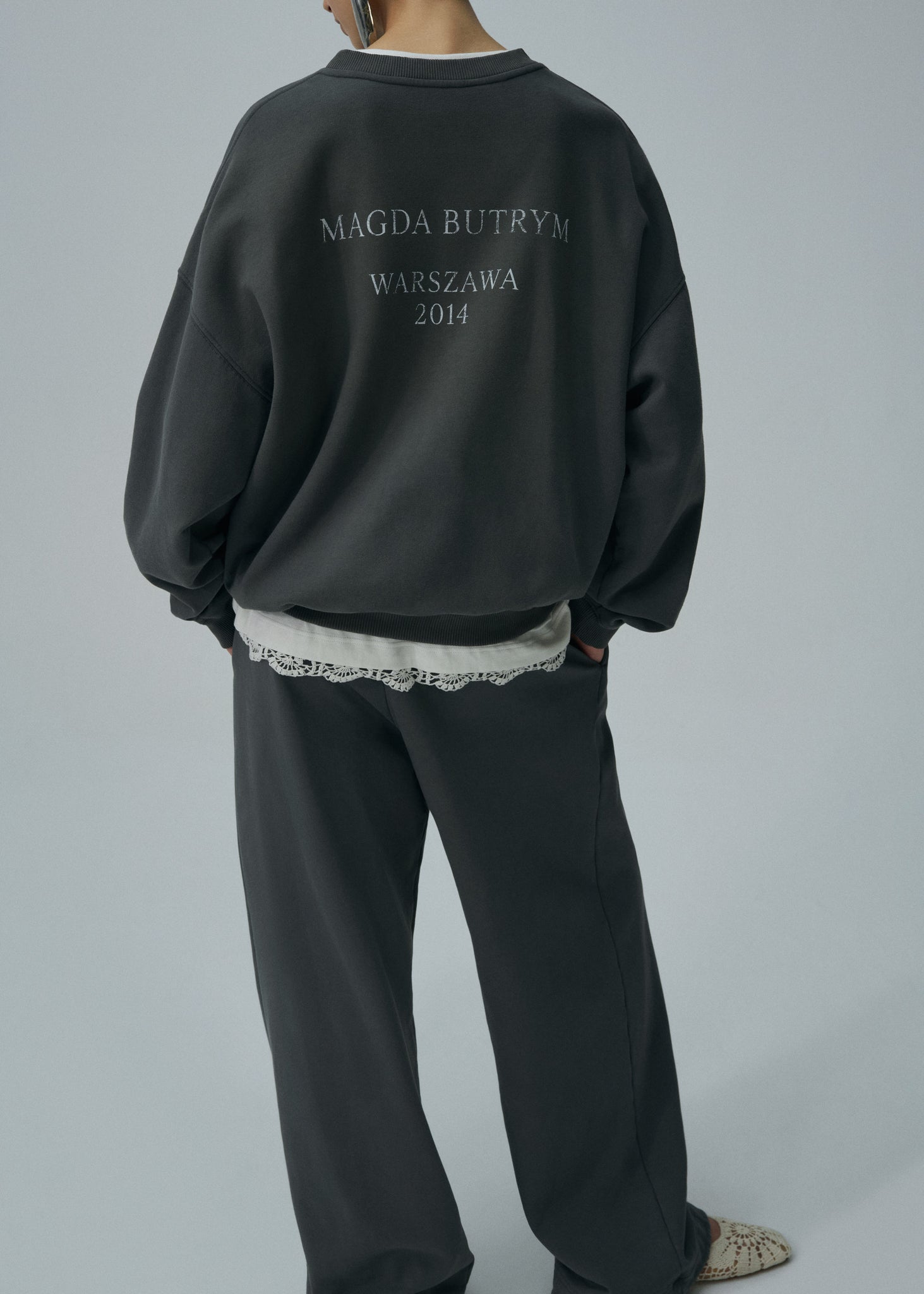 A classic crewneck sweatshirt designed in celebration of Magda Butrym's 10th anniversary. The relaxed silhouette features dropped shoulders and ribbed cuffs and hem. The back showcases brand's name and founding year 2014 Warszawa