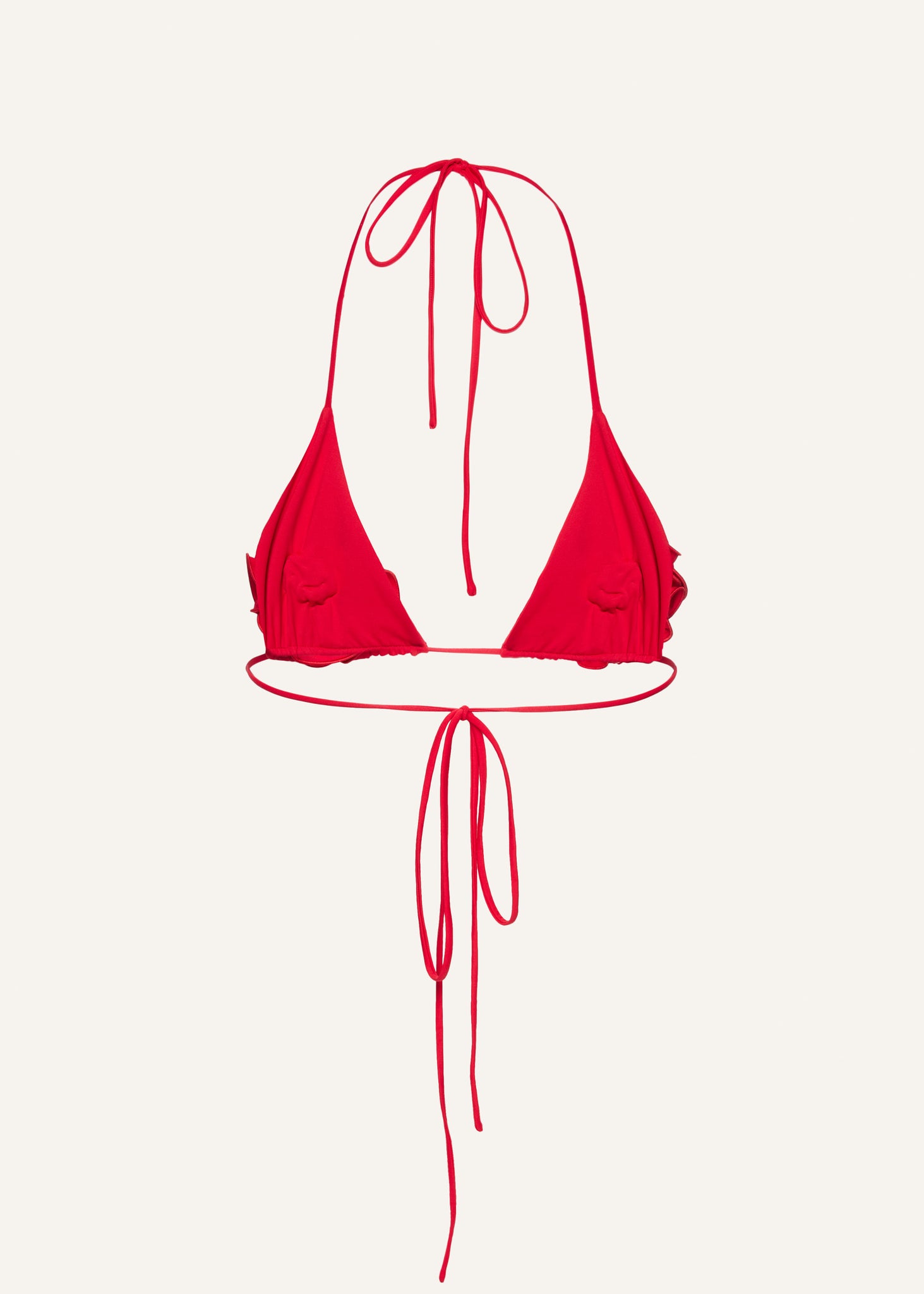 A classic triangle top with 3D floral embellishment on each cup, creating a signature Magda Butrym look. Extra long straps create a criss cross at the waist, with non-padded adjustable triangle cups at the bust. Made with Italian fabric.
