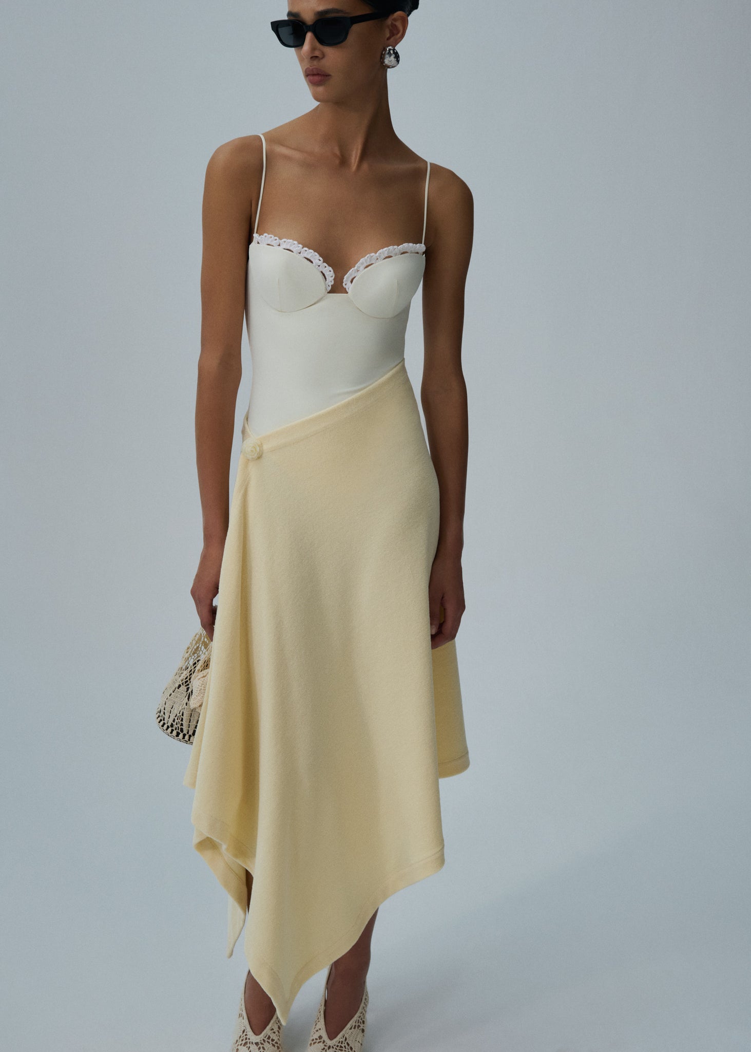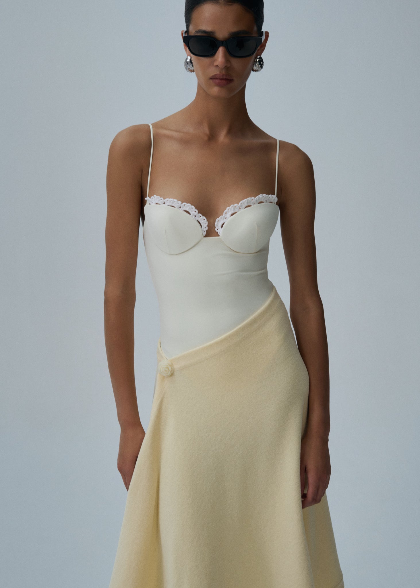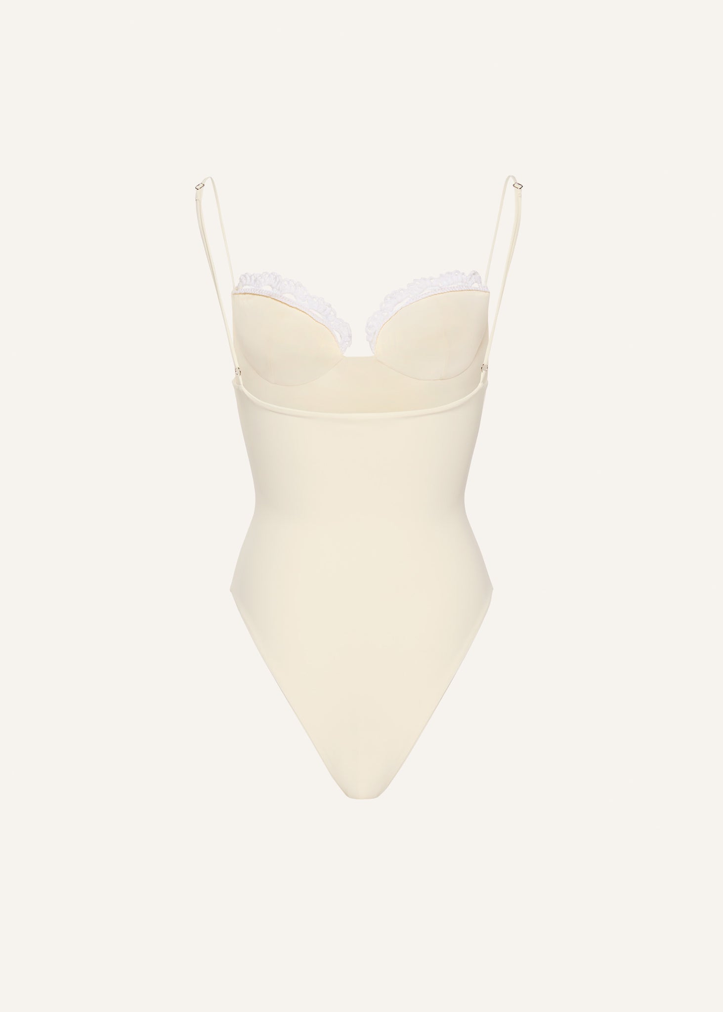 A sleek and elegant swimsuit with adjustable straps. Featuring delicate crochet detailing along the bustline, this one-piece creates a sophisticated beach look with its flattering neckline and structured cups. An essential addition to your swimwear collection.